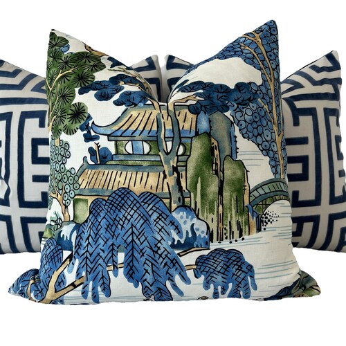 Thibaut Asian Scenic Kelly And Blue Green Pillow Lumbar Etsy